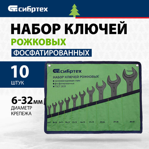 Набор ключей комбинированных Сибртех 6 - 32 мм, 22 шт, CrV, фосфатированные, ГОСТ 16983 15479