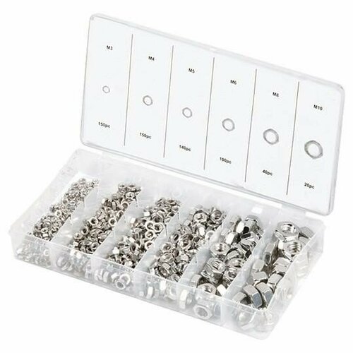 Набор гаек СИБРТЕХ М3, М4, М5, М6, М8, М10 600 предметов 47615 15595045
