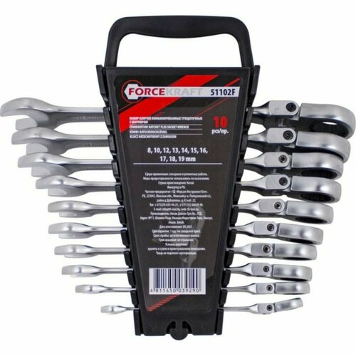 FORCEKRAFT Набор ключей комбинированных трещоточных с шарниром 10пр. в пласт. Держателе FK-51102F