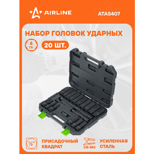 Набор головок ударных 1/2" 20пр. (8-24мм) пласт. кейс ATAS407 AIRLINE