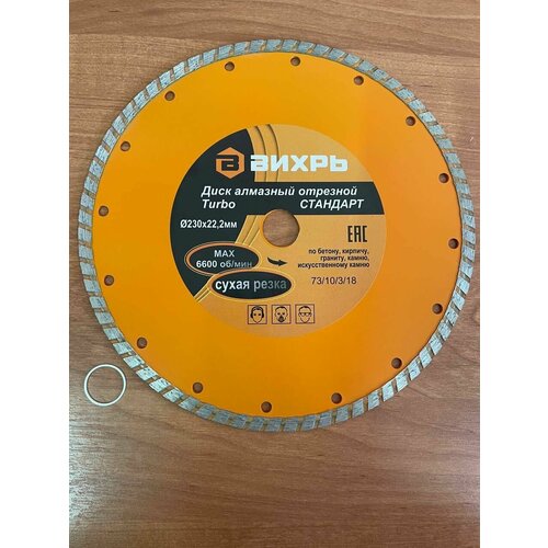 Диск алмазный 230х22,2мм турбо стандарт//отрезной, сухая резка вихрь
