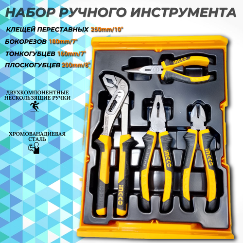 Набор ручного инструмента INGCO "4 в 1", 4 биты и 4 торцевые головки, кейс