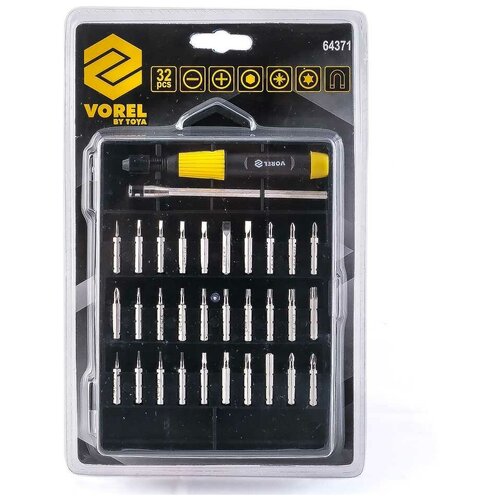 Отвертка с битами и головками, 27 пр, реверсивная, магнитная, VOREL 64386 (1 шт.)