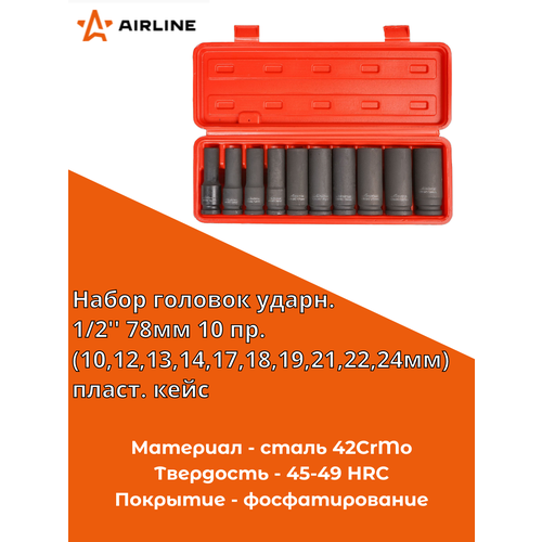 Набор головок ударных 1/2' 78мм 10 предметов, пластиковый кейс (ATAS048) AIRLINE