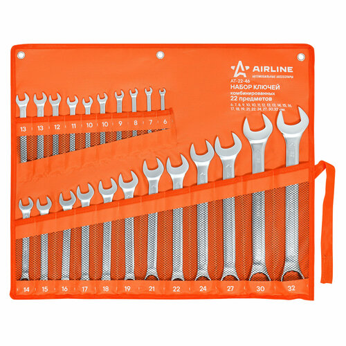 Набор ключей комбинированных 22 предмета (6,7,8,9,10,10,11,12,13,13,14,15,16,17,18,19,21,22,24,27,30,32мм) сумка AT-22-46 AIRLINE
