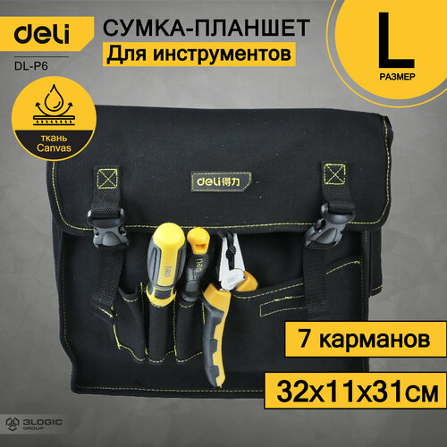 Сумка-планшет для инструментов Deli DL-P6, 320 x 110 x 310мм, плечевой ремень, ткань Оксфорд 600D