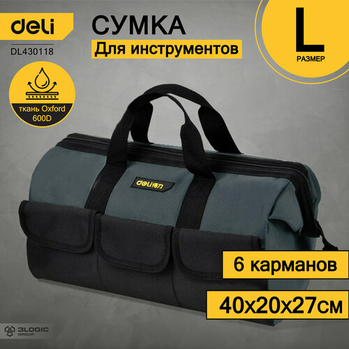 Сумка для инструментов Deli DL430018 400 x 200 x 270мм, 6 карманов, плечевой ремень, ткань Оксфорд