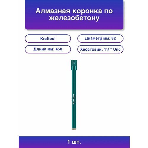Алмазная Коронка по железобетону, KRAFTOOL DIAMOND 32 мм (450 мм, 1 1/4, лазерная сварка сегментов), (29825-032)