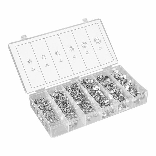 Набор гаек Сибртех М3, М4, М5, М6, М8, М10, 600 предметов 47615