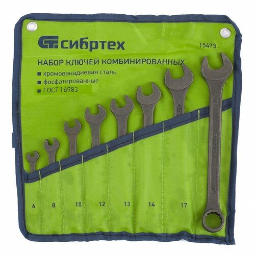 Набор ключей рожковых, 6-24 мм, 8 шт, CrV, фосфатированные, ГОСТ 2839 Сибртех