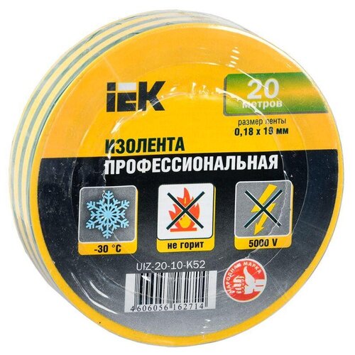 Изолента ПВХ 0.18х19мм желт./зел. (рул.20м), IEK UIZ-20-10-K52 (1 шт.)