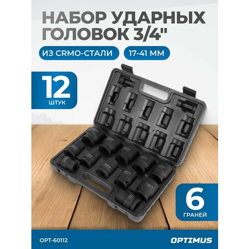 Набор ударных головок 3/4" 12 пр, 17-41 мм. OPT-60112