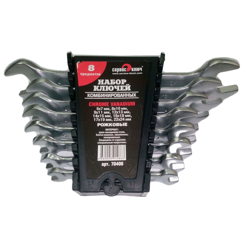 Набор ключей рожковых 8 предм.(6х7,8х10,9х11,12х13,14х15,16х18,17х19,22х24) хол/штамп; Сервис Ключ