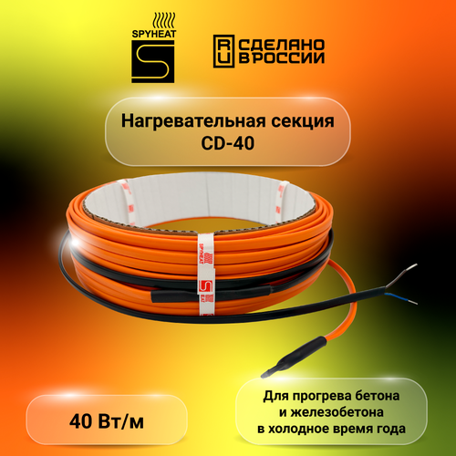 Двужильный кабель для прогрева бетона SPYHEAT монолит - секция 40 Вт/м, CD-40-1000, длина кабеля 25 м, мощность 1000 Вт