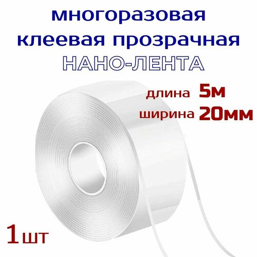 Нанолента многоразовая прозрачная шир. 20 мм, длина 5 м , клейкая лента / нано-скотч