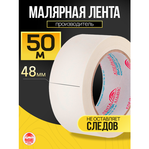 Лента малярная / малярный скотч, 48мм*50м, 1 шт. / для защиты поверхностей при проведении малярных работ