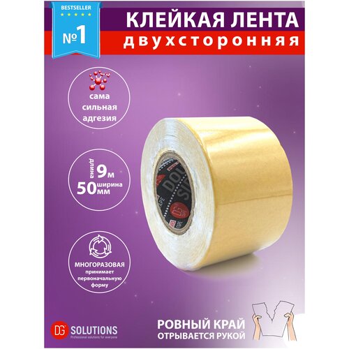 Двусторонняя клейкая лента DGTAPE Double Side PRO 50мм/9м, Белая. Многоразовый скотч с сильной адгезией
