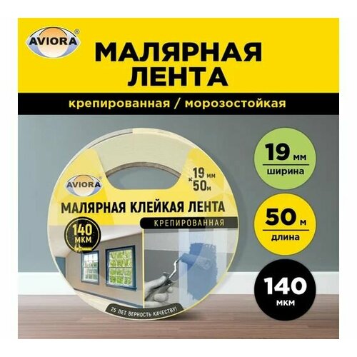 Крепированная бумажная малярная клейкая лента AVIORA 19 мм, 50 м 2 шт.