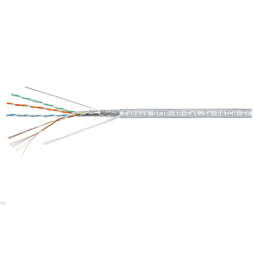 Кабель Cabeus витая пара, 100 метров , экранированная, категория 5e, 4 пары, многожильный SFTP-4P-Cat.5e-PATCH-GY