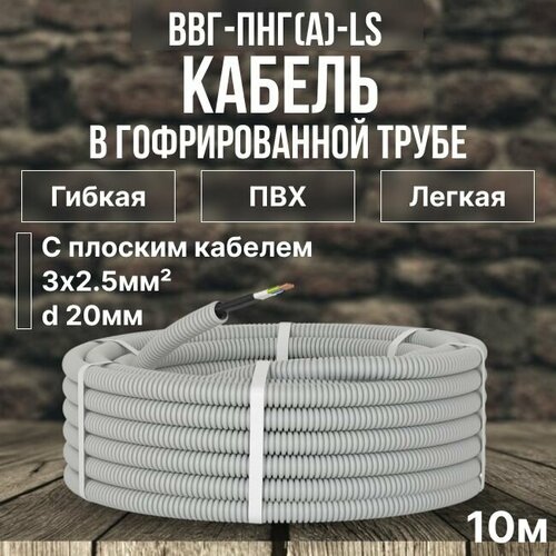 Кабель в гофре DKC Premium ВВГ-Пнг(А)-LS 3х2.5 Конкорд ГОСТ +, ПВХ серая D20 мм - 10м