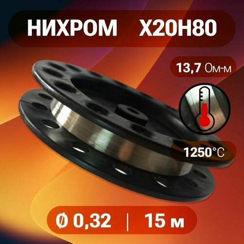 Проволока нихром 0,32 мм количество 15 метров на катушке, Х20Н80