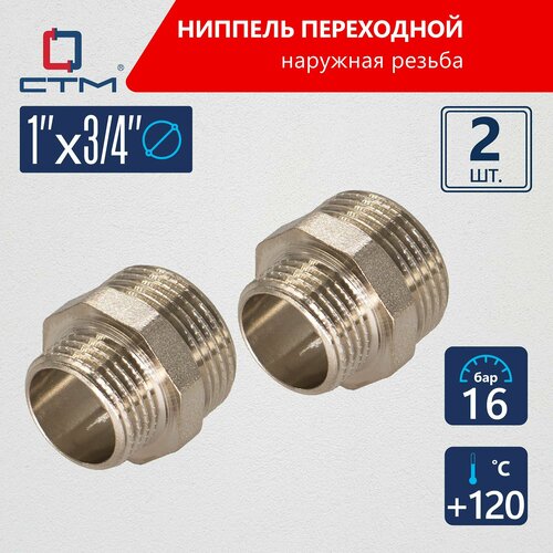 Ниппель переходной сантехнический 1 1/2"x1 1/4" штуцер / штуцер CTM - резьбовой фитинг с наружной резьбой для соединения элементов ...
