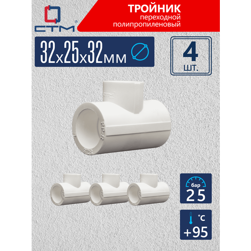 Тройник 32х25х32 для полипропиленовой трубы переходной 4 шт