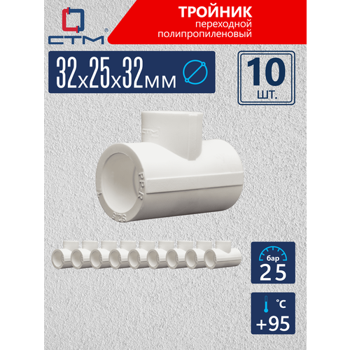 Тройник 32х25х32 для полипропиленовой трубы переходной 10 шт