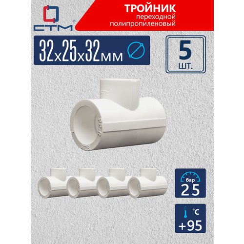 Тройник 32х25х32 для полипропиленовой трубы переходной 5 шт