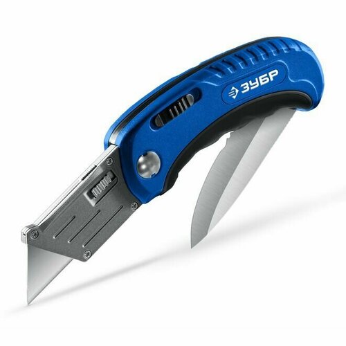 Технический, универсальный складной нож 2-в-1 с трапециевидным лезвием ЗУБР 09227