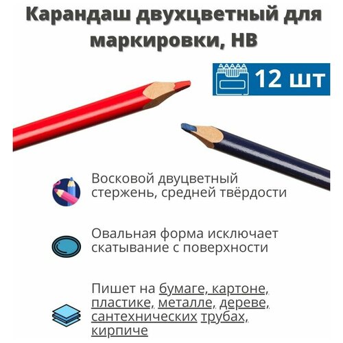 Строительный карандаш 12 шт ЗУБР двусторонний, HB, 180мм, КС-2, серия Профессионал