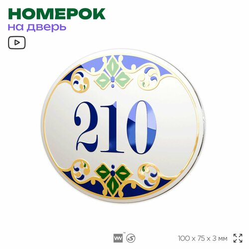 Номер на дверь квартиры 210, для кабинета, офиса, в средиземноморском стиле, шильдик 10 х 7,5 см, белый, Айдентика Технолоджи