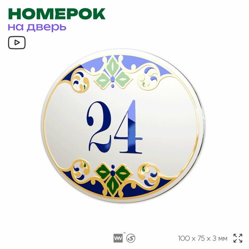 Номер на дверь квартиры 24, для кабинета, офиса, в средиземноморском стиле, шильдик 10 х 7,5 см, белый, Айдентика Технолоджи