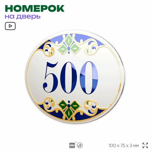 Номер на дверь квартиры 500, для кабинета, офиса, в средиземноморском стиле, шильдик 10 х 7,5 см, белый, Айдентика Технолоджи