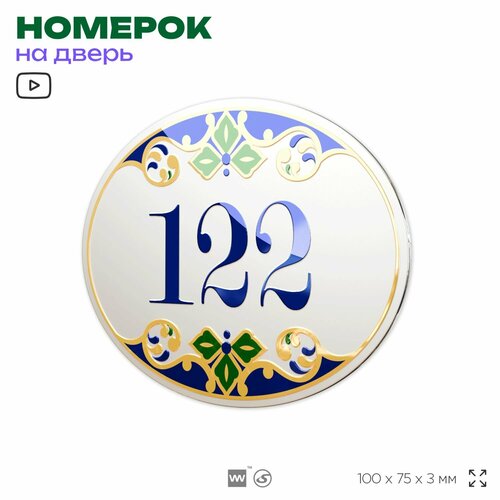 Номер на дверь квартиры 122, для кабинета, офиса, в средиземноморском стиле, шильдик 10 х 7,5 см, белый, Айдентика Технолоджи