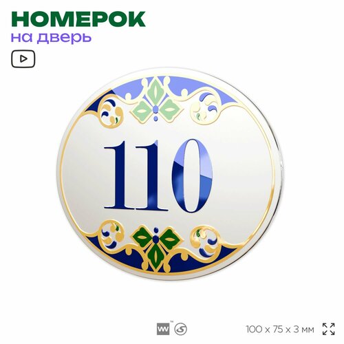 Номер на дверь квартиры 110, для кабинета, офиса, в средиземноморском стиле, шильдик 10 х 7,5 см, белый, Айдентика Технолоджи