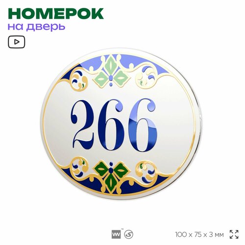 Номер на дверь квартиры 266, для кабинета, офиса, в средиземноморском стиле, шильдик 10 х 7,5 см, белый, Айдентика Технолоджи