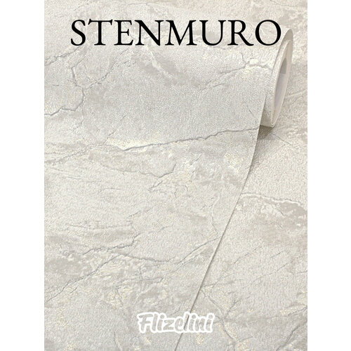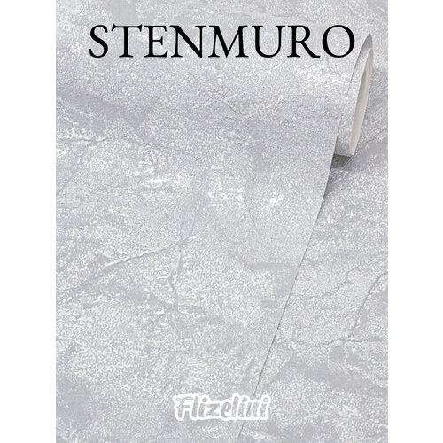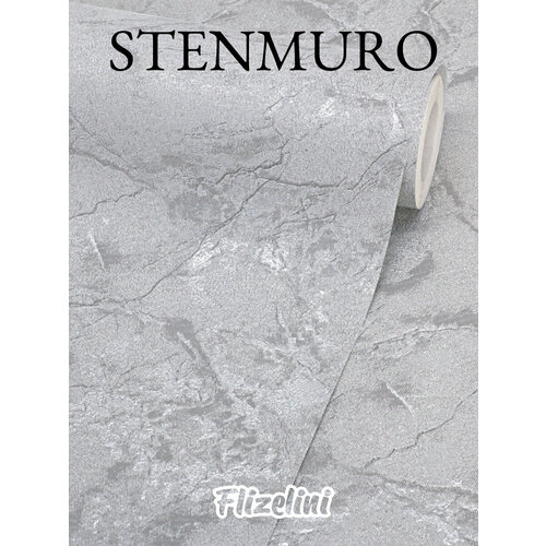 Обои виниловые флизелиновые, фактурная штукатурка, серые с серебристыми прожилками, эффект камня, антивандальные метровые, для спальни Stenmuro (Flizelini, 1900-21)