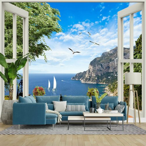 Фотообои на стену "Вид из окна на море" флизелиновые 300х260 см.