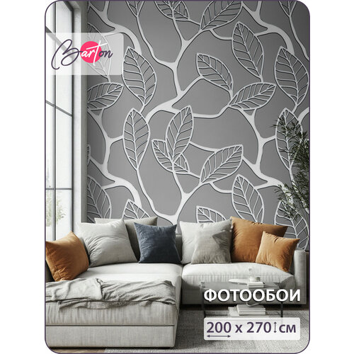 Фотообои на стену флизелиновые 3d Листья 200х270 см Bartonwall M029_G