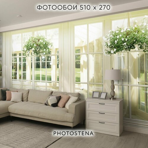Фотообои на стену флизелиновые встык PHOTOSTENA Окно в сад 5,1 x 2,7 м 13,8 м2