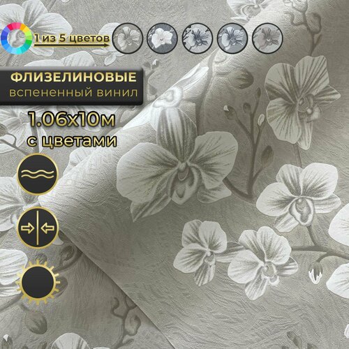Обои флизелиновые 1.06 с цветами, на кухню, в спальню, плотные, моющиеся, устойчивы к выгаранию и царапанию
