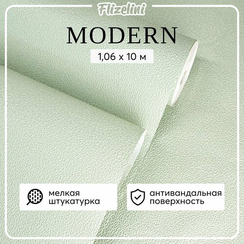 Обои флизелиновые штукатурка светло-зеленая, антивандальные, для кухни, Modern (Flizelini, 1808-71)