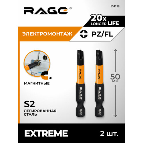 Биты магнитные S2 PZ/FL1 x 50 мм 2 шт RAGE by VIRA