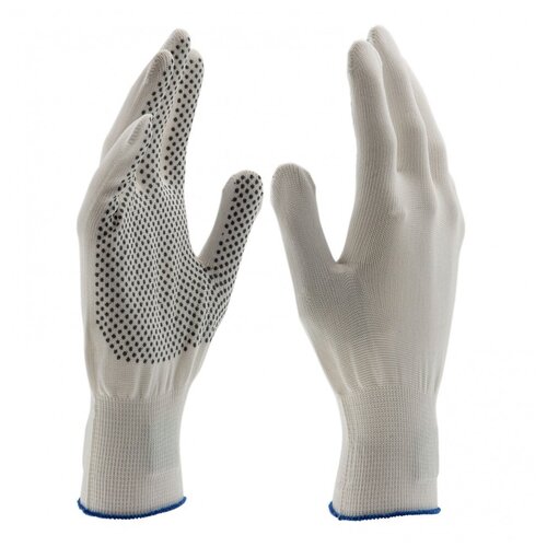 Перчатки Нейлон, ПВХ точка, 13 класс, белые, L Россия