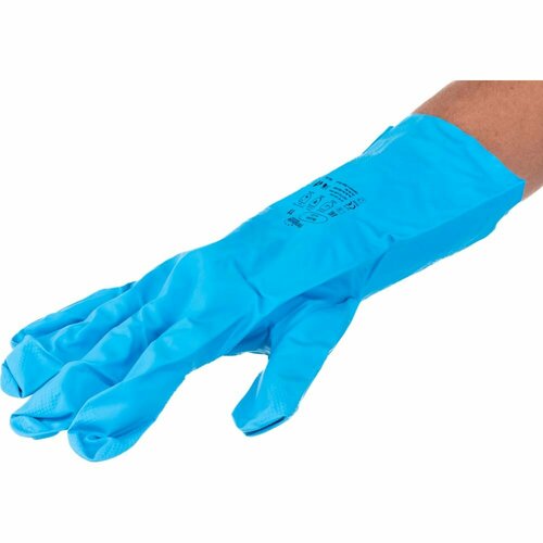 желтый, голубой, синийПерчатки КЩС Manipula Союз (LN-F-05) желто-синего цвета, с хлопковым напылением. Размер: 7-7,5. Материал: латекс/неопрен. Длина: 320 мм. Толщина: 0,7 мм. Рельефная поверхность области захвата. Степень защиты от кислот: 80%. Степень защиты от щелочей: 50%. Количество пар в упаковке: 1. Количество упаковок в транспортной коробке: 120.
