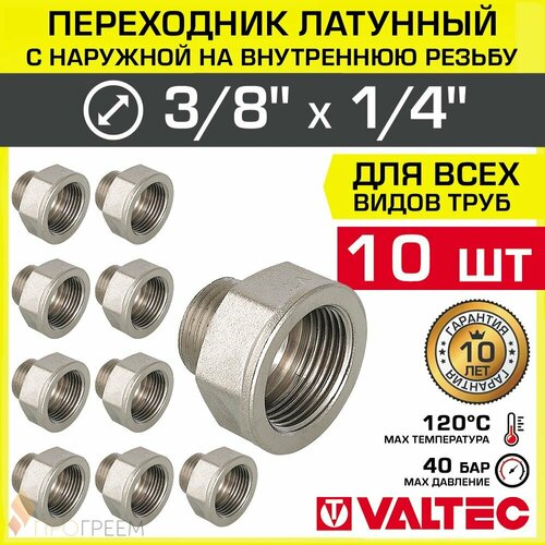 10 шт - Переходник 3/8" х 1/4" ВР-НР VALTEC латунный сантехнический / Фитинг резьбовой - переход с наружной на внутреннюю резьбу для соединения труб диаметром ДУ10 и ДУ8, арт. VTr.592. N.0302