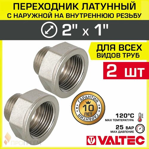 2 шт - Переходник 2" х 1" ВР-НР VALTEC латунный сантехнический / Фитинг резьбовой - переход с наружной на внутреннюю резьбу для соединения труб диаметром ДУ50 и ДУ25, арт. VTr.592. N.0906