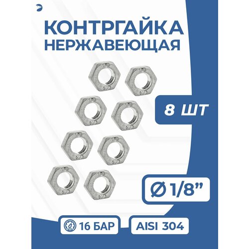 Контргайка нержавейка, ДУ 6 (1/8" дюйма), AISI 304, PN16, набор 8 шт
