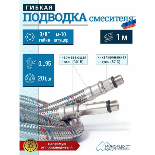 Гибкая подводка для смесителей М-10 3/8" MONOFLEX 12мм, длина 100см/1м, 2шт/уп